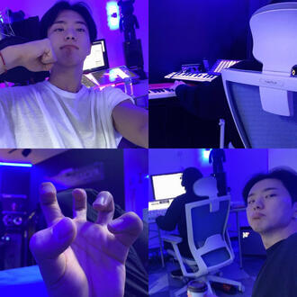 — established relationship, fluffjihoon working in his studio till very late but his thoughts seem to be elsewhere
